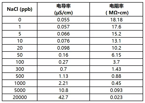 在25℃時(shí),NaCl濃度與電導(dǎo)率/電阻率值的關(guān)系: