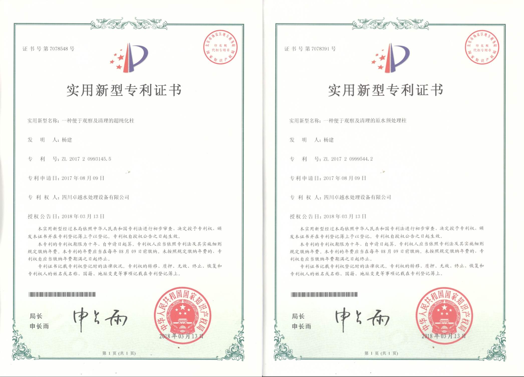 恭喜四川卓越水處理榮獲國(guó)家多項(xiàng)新型發(fā)明專利