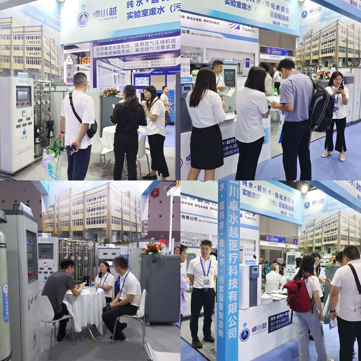 展會現(xiàn)場人潮如涌,各大展區(qū)熱鬧非凡,本次展會我司亮相的產(chǎn)品均為全新升級的產(chǎn)品,型號為:實驗室超純水機系列:常規(guī)分析型超純水機ZYC、微量分析型超純水機ZYM、超級微量型超純水機ZYP;醫(yī)用純水備: 內(nèi)鏡室純水設(shè)備 ZYNJQX 、口腔科清洗純水設(shè)備ZYKQ、供應(yīng)室純水設(shè)備ZYQX、檢驗科生化儀超純水機ZYLWP;實驗室廢水處理設(shè)備系列:實驗室綜合廢水處理系統(tǒng)ZYSYFS、基礎(chǔ)型實驗室廢水處理系統(tǒng)ZYSYFS-D;制劑室純化水系統(tǒng)ZYCHS以及卓水越今年推出的新品——ZYWS微酸性電解水生成器等。