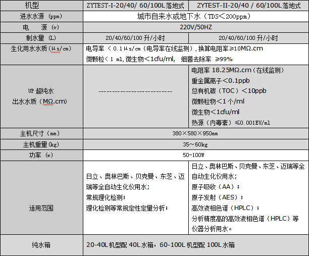 生化分析型超純水機(jī)ZYTEST-II-20T技術(shù)指標(biāo):